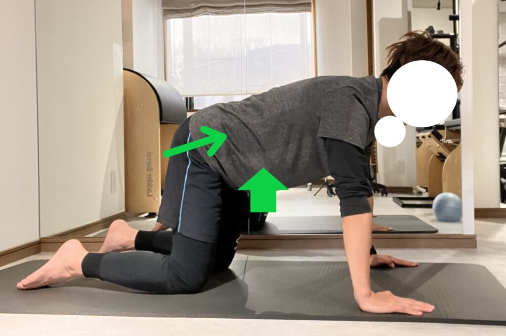 背骨の分節的な動きを意識しながら動かすことで骨盤底筋・腹横筋・お尻の筋肉を同時に活性化し、姿勢改善にもつながります。