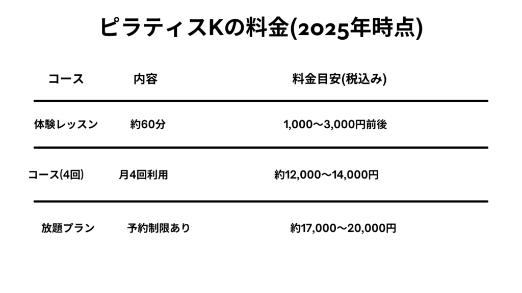 ピラティスKの料金表